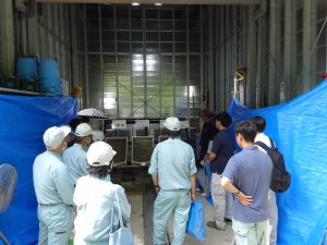 研修では室内講義のほか、実際に現地を見ながら、災害時の迅速な判断・対応について検討したり、工事の施工管理や完成した施設の維持管理の検討、あるいは工事資材に関する施設等の見学なども行っています。
